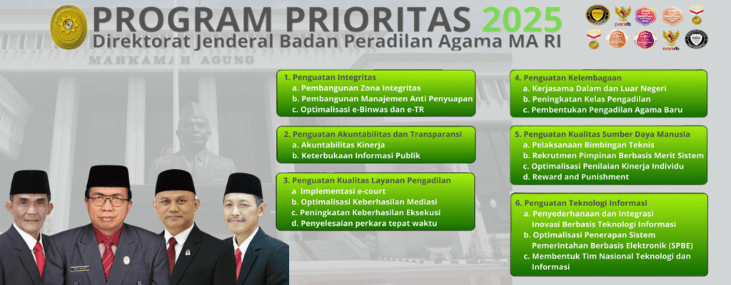 Sehubungan dengan telah diterbitkannya Keputusan Sekretaris Mahkamah Agung Republik Indonesia Nomor 27101/SEK/SK.RA1.3/X/2025 tanggal 31 Oktober 2025 tentang Penetapan Indikator Kinerja Utama Pengadilan Tingkat Banding dan Pengadilan Tingkat Pertama di Lingkungan Mahkamah Agung Republik Indonesia Tahun 2025–2029, disampaikan kepada seluruh Aparatur Sipil Negara di satuan kerja masing-masing untuk memedomani dan melaksanakan ketentuan tersebut.